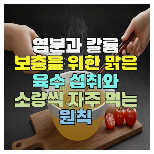 - 매일 소량의 맑은 육수를 섭취하여 염분과 칼륨을 균형 있게 섭취할 수 있습니다.